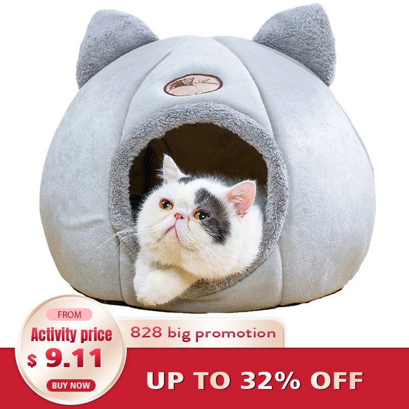 pet kabarik kedi kopek yatagi ev magara yatak kedi evi yumusak ev ile kediler icin yavru kedi kopek yatagi s kucuk kopekler kediler icin cat beds mats aliexpress